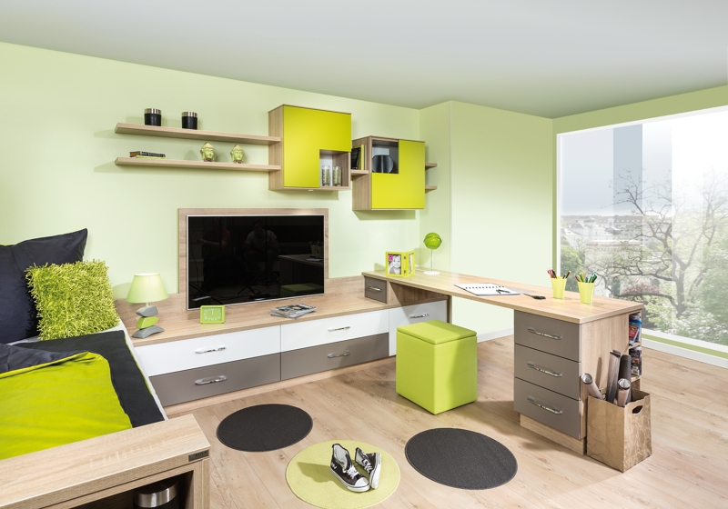 - Starší školáci - si začnou svůj pokoj postupně přizpůsobovat dle svých vlastních zájmů. Najednou zjistíte, že by si místnost nejraději vymalovali na černo, zatáhli závěsy a své kamarády navštěvovali jen na Facebooku, nebo se naopak doslova vrhnou na sport, začnou hrát na kytaru, případně se zamilují do čtení a podobně. Pro tyto své aktivity však potřebují i vhodný úložný prostor, na který musíme včas pamatovat.